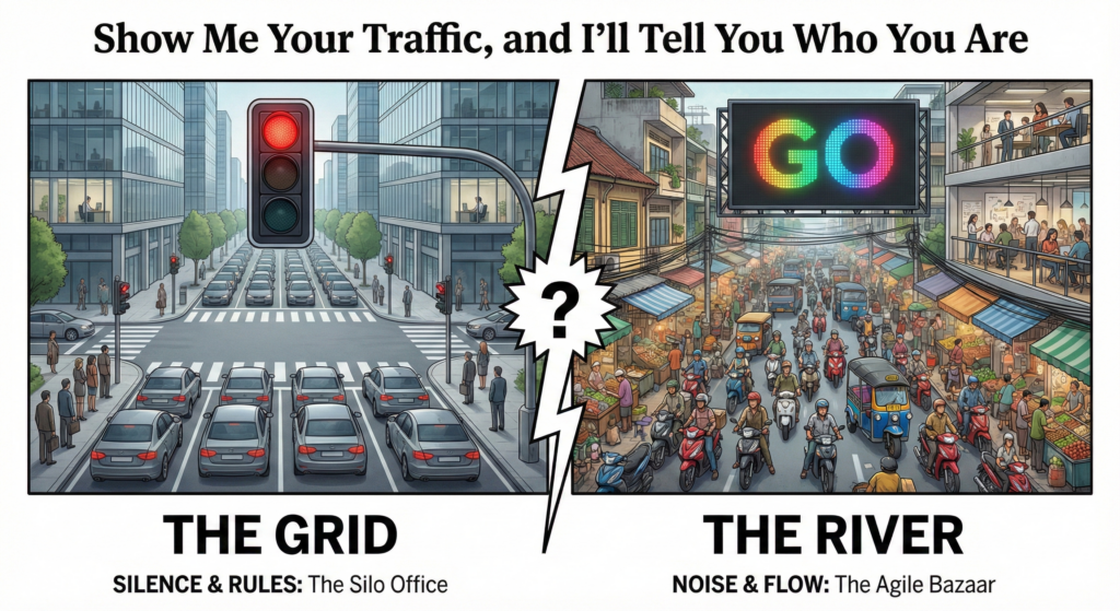 Every country has the “Hardware” which includes the traffic laws, the painted lanes, and the red lights. But what actually governs the road is the “Software,” or the unwritten social norms.